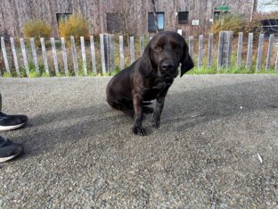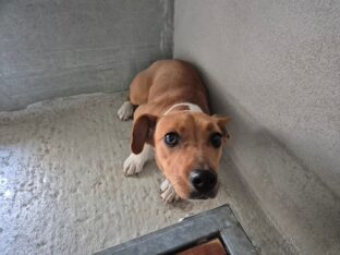 Mâle, non identifié, de race croisée Braque. Il a été retrouvé et déposé par la police municipale de Carrières-sous-Poissy le 17/11/2025. Il est de couleur marron et blanc.
