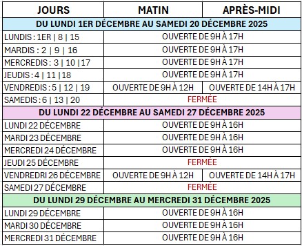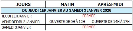 L'Éco-fourrière des Quarante Sous modifie ses horaires d'ouverture du 3 novembre 2025 au 3 janvier 2026 inclus en raison de manque d'effectif et des contraintes d'exploitation.